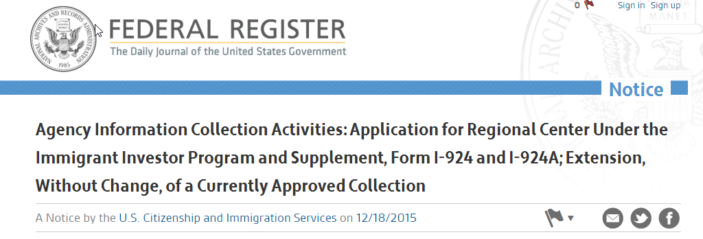Agency Information Collection Activities: Application for Regional Center Under the Immigrant Investor Program and Supplement, Form I-924 and I-924A; Extension, Without Change, of a Currently Approved Collection