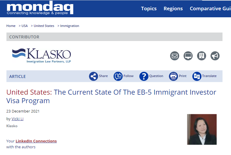 United States: The Current State Of The EB-5 Immigrant Investor Visa Program