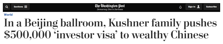 In a Beijing ballroom, Kushner family pushes $500,000 ‘investor visa’ to wealthy Chinese